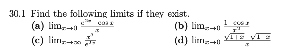 (c ) Taking derivatives 3 times both upstairs and downstairs, we get $$ \lim_{x \to \infty} \frac{6}{8 e^{2x}} = 0 $$