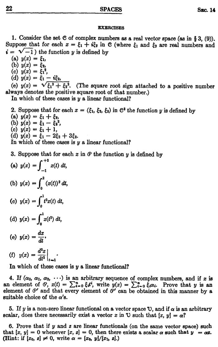 See the chapter on dual vector space for notations. My canonical pairing is using pointed bracket $\langle -, - \rangle$, Halmos uses $[-,-]$.